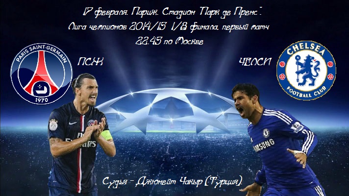 В прошлом сезоне ПСЖ и Челси встречались на стадии 1\4 финала, дома ПСЖ выиграли 3-1, а вот в гостях без Златана, травмировавшегося, проиграли 0-2 и Челси прошли дальше за счет гола забитого в гостях, надеюсь сегодня ПСЖ не пропустят и выиграют 2-0=)