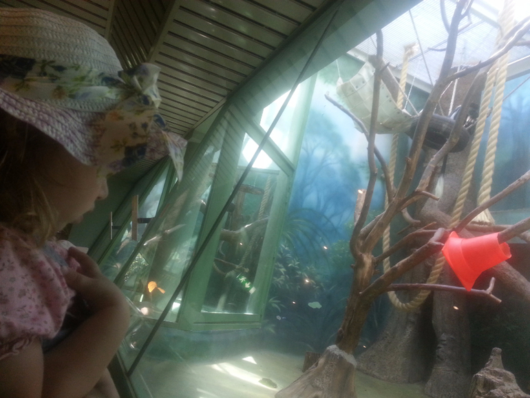 Как оказалось наверно рановато)Мало какие звери нас заинтересовали) Вот в террариуме понравилось это да) А так по моему нам взрослым там было интересней)А Лизок для себя открыла вкусняшку новую-сладкий попкорм)))