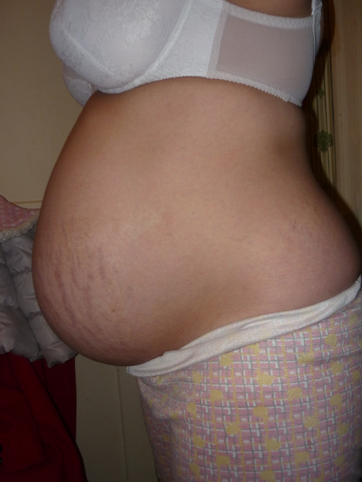Да, животик определенно опустился! А когда у тебя такие сильные растяжки появились? Сразу или под конец?