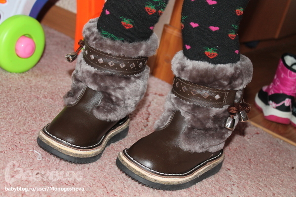 все никак не могла я выбрать Вареньке ботиночки зимние,ходила моя лапуня в демисезонках. ботиночки мне либо не нравились,либо размеры не подходили,валенки почему-то не хотелось,решила я заказать унты,вышло конечно подороже ботинок или валенок,но пришедшим товаром я довольна-натуральные,мягонькие,несмотря на отсутствие замков очень легко одеваются,Варя даже сама их натягивает