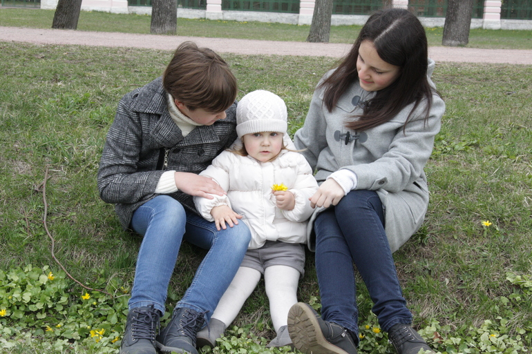 Мои крошкиВыбрались сегодня всей семьёй....так здорово погуляли) Евасик - настоящая бандитка, подбирает все палки, дерется ими с Пашкой. Так чисто в парке....цветочки первые пробиваются, детей много гуляет - красота)