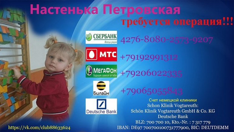 Диагноз, состояние, сроки, координаты, куда можно перевести деньги...
