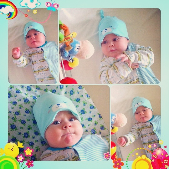 Весёленькая шапочка!))) Я тоже такую купить хотела Серёжке, но их только оптом продавали. Её ещё можно на глазки надвинуть, когда малыш на улице спит, чтобы солнышко не мешало.