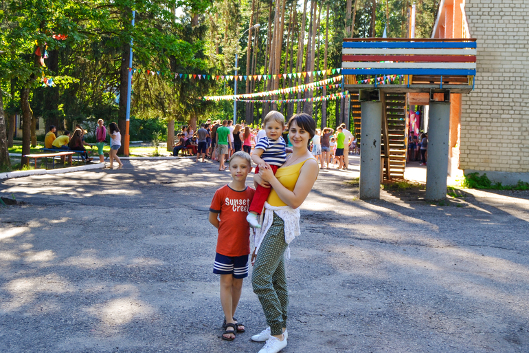 Давно там не были... Такая ностальгия, ведь кажется только вчера я вот так держала на руках маленького Матвея, совсем такого же, как Лука сейчас (и даже меньше), а потом он бегал по всему лагерю и врывался во все мероприятия... И вот теперь тот малыш стоит грациозно по левую сторону от меня, а на руки взгромоздился ещё один перепёлкинский жук.
