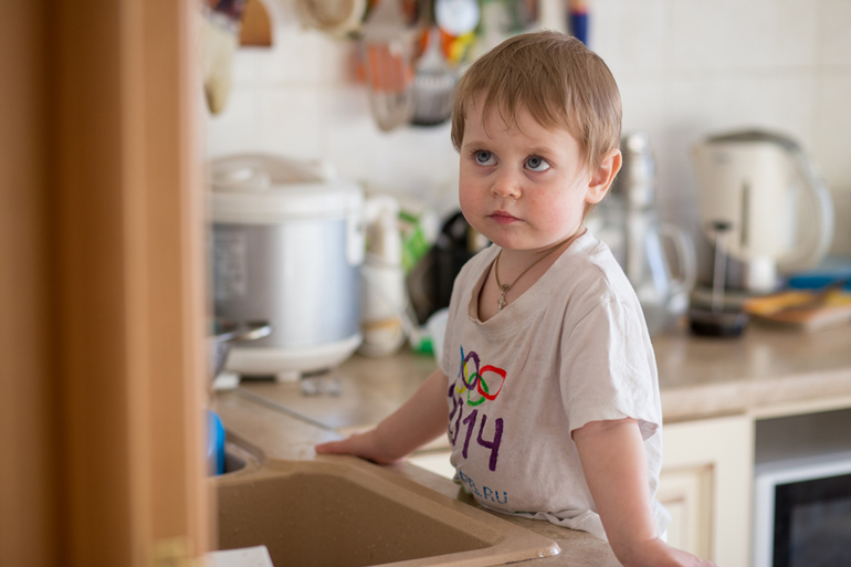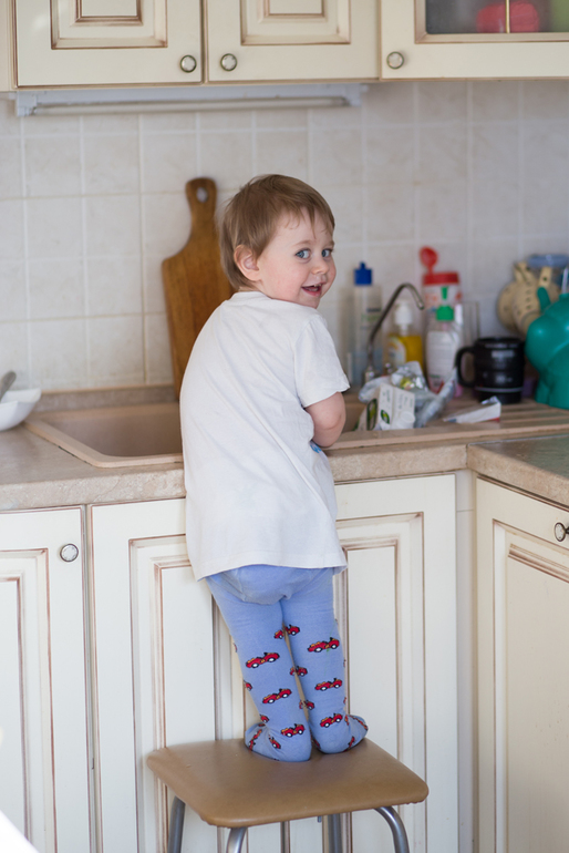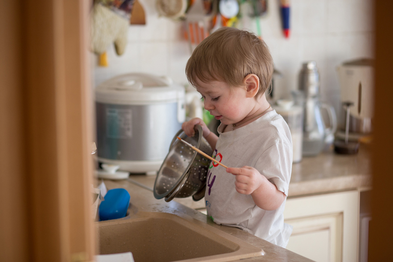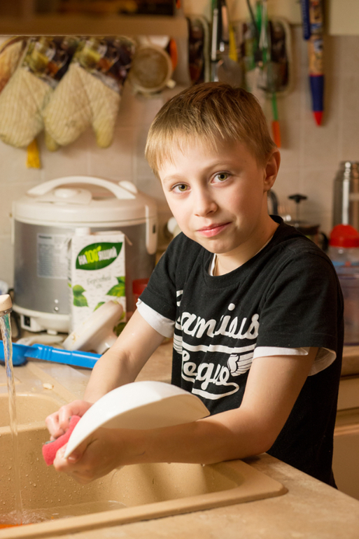 Отныне около 20 раз на дню он подставляет табуретку к мойке на кухне и жаждет мыть посуду (подала с дуру пример).