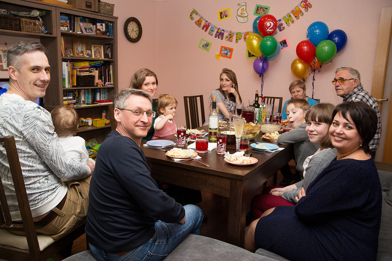 У нас было три малыша, Лука, моя крестница и наш астральный брат (родились с двухчасовой разницей, лежали с его мамой на соседних койках в роддоме). Муж пришел на час позже, но сели за стол всё-таки вместе.
