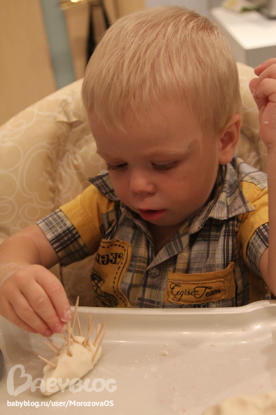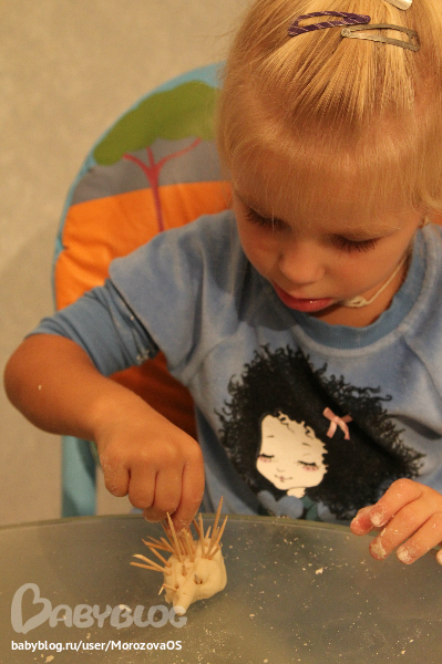 они и месили тесто, и пачкались мукой, и мяли лепешки, тыкали в массу пальцами и попадавшимися под руку предметами))) потом решили слепить ЙОЖИКАФФ))))))))))