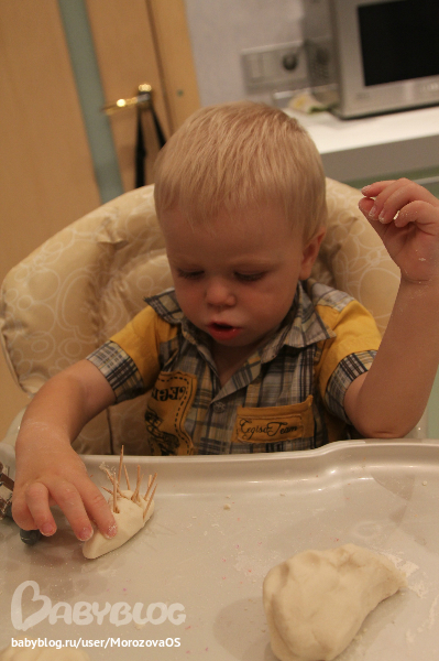 я даже пожертвовала взять фотик своими испачкаными "соленотесточными" руками, чтобы срочно задокументировать сие событие и их увлеченность этим кулинарным материалом: