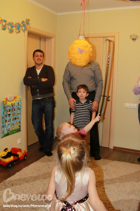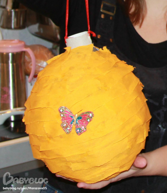 после поедания торта мы разбивали-таки пинату))))))) не успела я только довести до ума этот УЛЕЙ С ПЧЕЛАМИ..прилипила бабочку с холодильника ииииииииииии В ДОБРЫЙ ПУТЬ)))