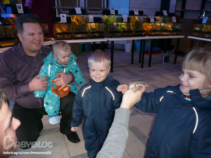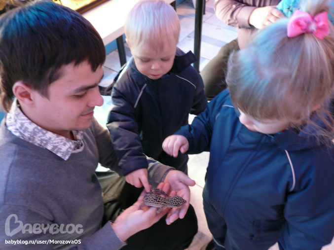 Чудо-паренек (манагер этой выставки) как-то проникся к нашей шумной семейке))) и даже достал нам паука-птицеяда!!!!!!!