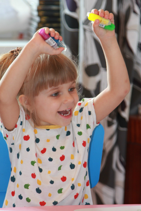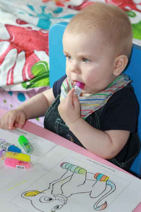 вернула, наконец-то, свои фломастеры и поделилась с Яриком)) но тут же решили перейти к бодиарту))) начали баловаться и разукрашивать друг другу лица...