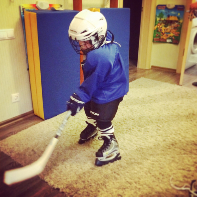 Но , надо сказать, за 2 недели тренировок он так носится по льду....Что даже я так не умею (но я-то вообще...максимум с ледяной горки с криками скатиться)))))) )