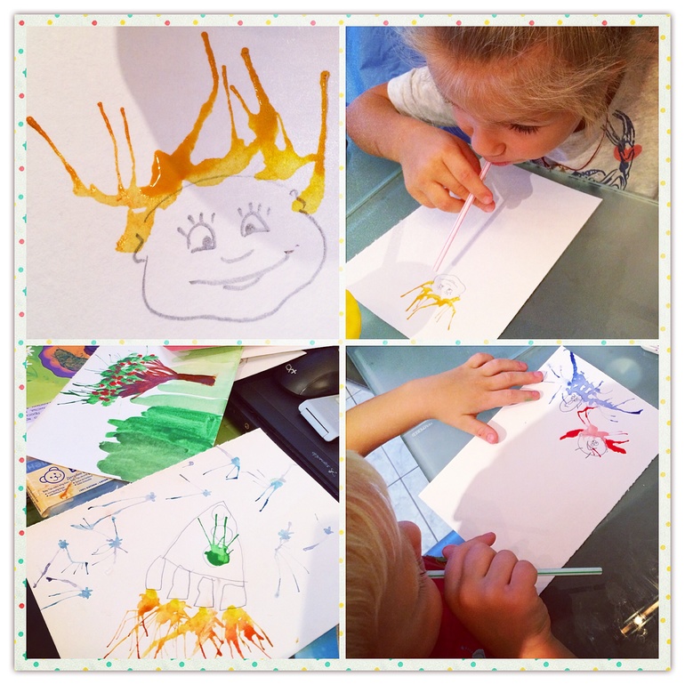 )) это каплю краски капаешь на рисунок и дуешь на эту каплю через трубочку...)))