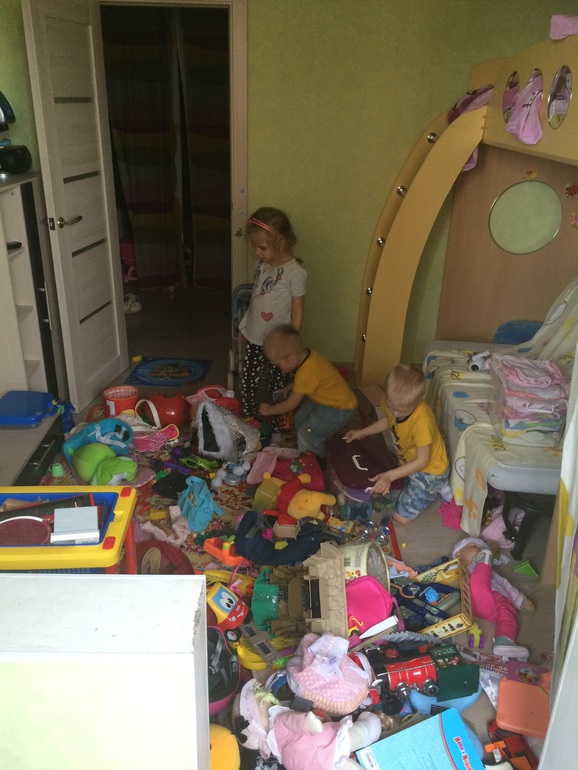 Олег на работе с утра до ночи. На улице дождь льет. Дети разносят квартиру)))