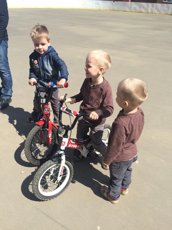 Класс! Площадка у вас шикарная!!! У нас ничего подобного в округе... А велики побольше мне кажется не стоит торопиться покупать, пусть на этих освоятся как следует...