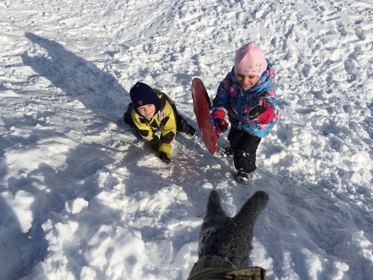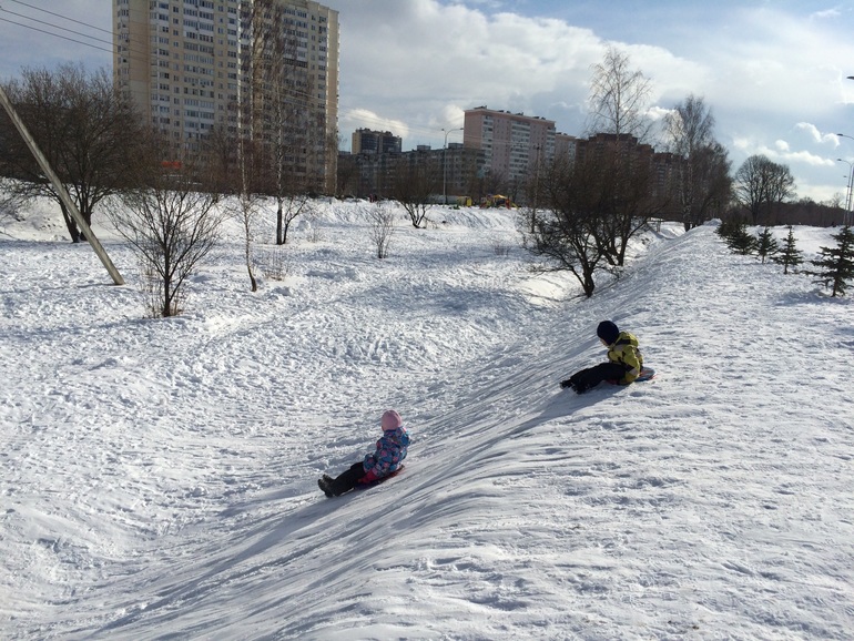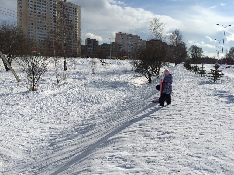 надо нам туда добраться) я уж думала, все горки растаяли, мы-то сегодня на самокате гоняем, тротуары все без снега...