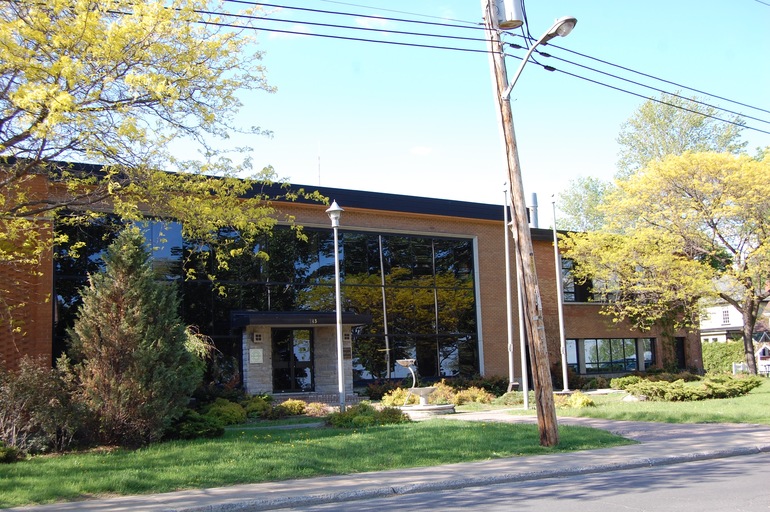 Какое-то государственное учреждение! Может, деревенская мэрия (таун холл). Или нет... Наверное, для мэрии возьмут какое-то старинное здание с колоннами. Тогда попробую другой вариант: место, где водительские права выдают. Похож чуток на Springfield department of motor vehicles, в котором сестры Мардж Симпсон работают :))))