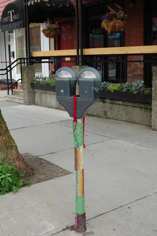Для парковочных счетчиков связали одежки, чтобы им не было холодно.