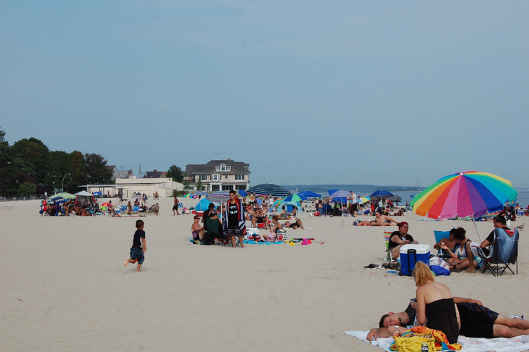 Пляжи со спасателями, каруселями, кафе и прочими развлечениями в выходные выглядели так: