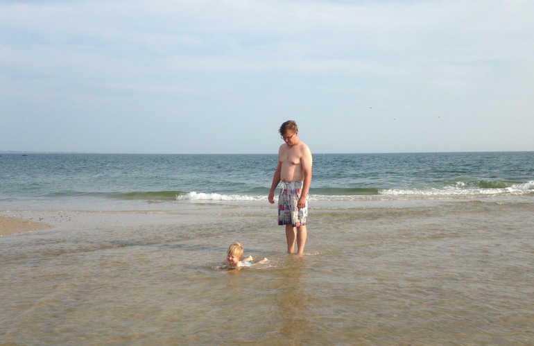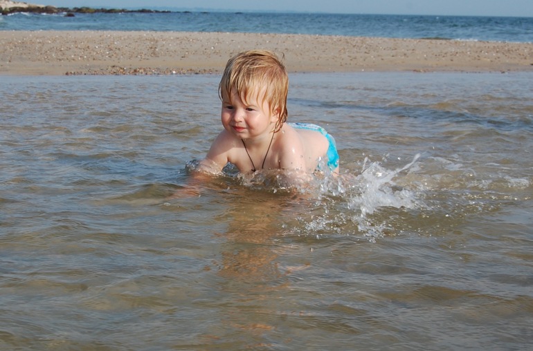 Дети все равно только бегали по прибою или заходили с нами побулькаться чуть глубже. А мы даже при желании далеко не уплыли бы, за ними надо следить сейчас только вдвоем.