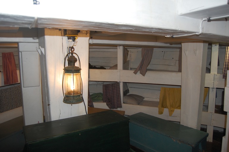 Можно подниматься на борт, все трогать, залезать в трюм и познакомиться с нелегким бытом моряков. Тут они спали, например.