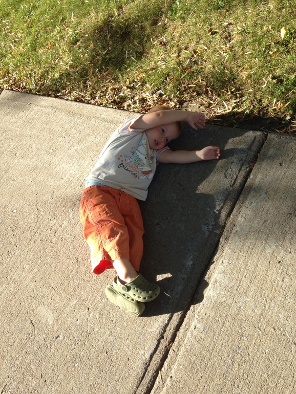 Моя сестра также валялась по земле, но зимой. Игра называлась мертвая лисица. Мы с мамой шли по дорожке, она забегала вперед, падала поперек и лежала. Когда мы подходили к ней, то нужно было сказать: ой, батюшки, мертвая лисица на дороге валяется! И идти дальше. Она вставала, снова забегала вперед и игра продолжлась. ИИ очарователен, как всегда )