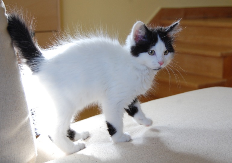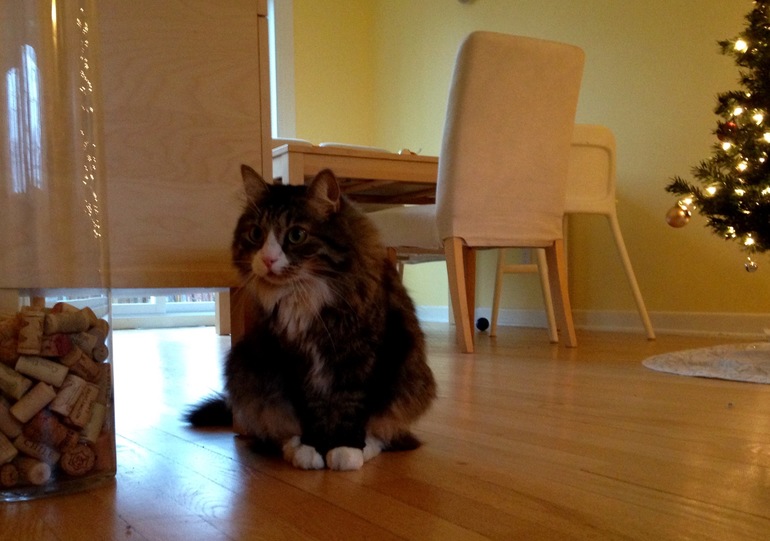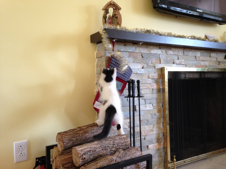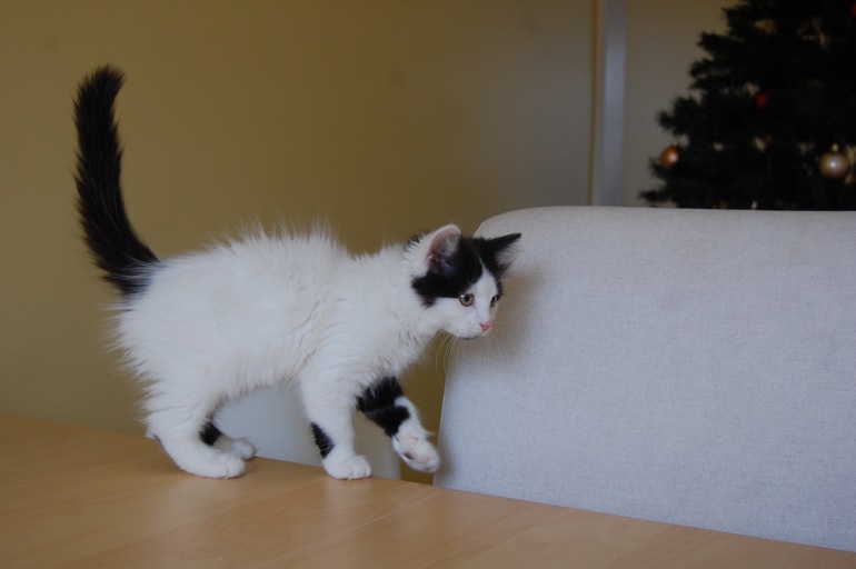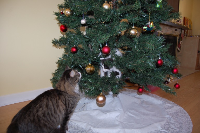 Киса веселая и игручая, как и положено. Нашла уже мишуру, пришлось убрать.