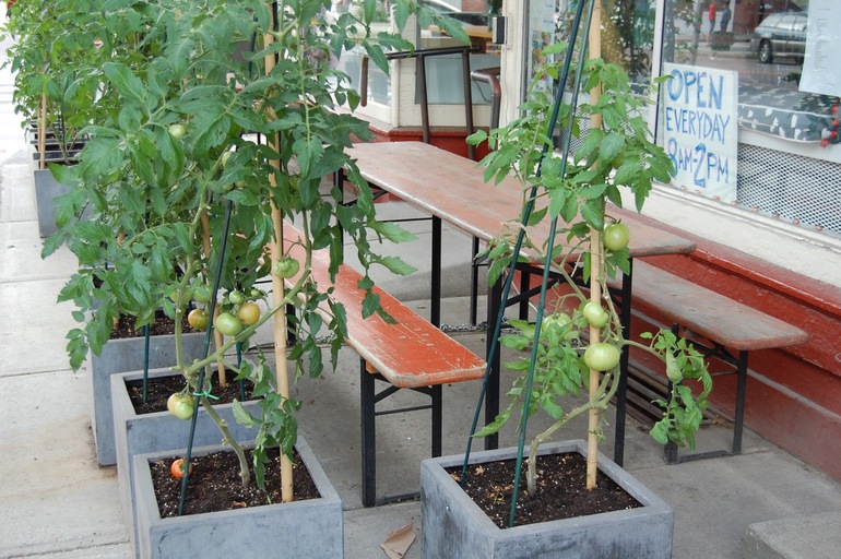 Помидоры около магазина или кафе, не помню.
