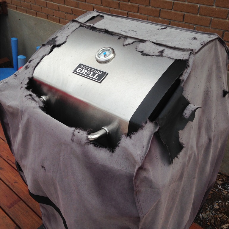 Или вот белки. Нынче у них весна и пора строительства гнезд. В один прекрасный день смотрю на чехол от барбекюшницы - батюшки!!