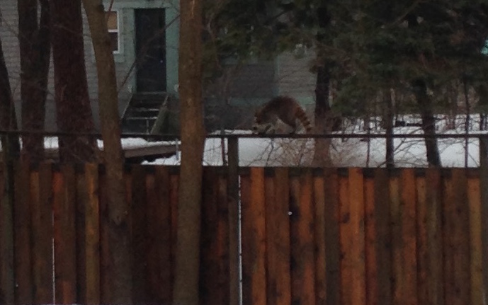 Вчера два енота ходили по заборам у нас на бэк-ярде.