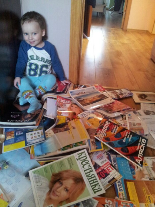 обожает наклейки, клеет только в книжечки)))) зато рисует везде, вообщем коплю на ремонт