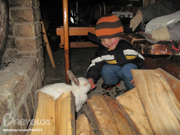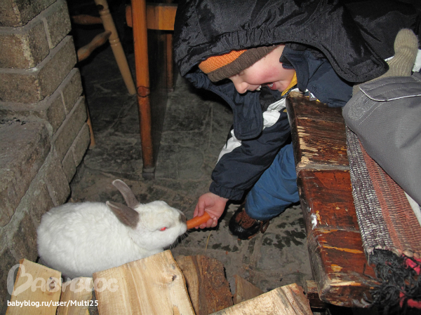 И точно - маленький беленький пушистик)))) Илюхе выдали морковку и он был в восторге. морковку уговорили на двоих )))))