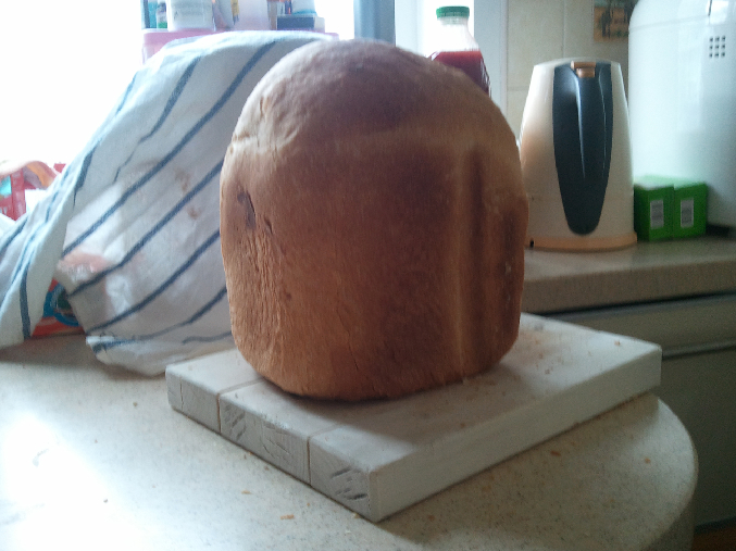 чуть не снес крышку хлебопечки, хотя дрожжей меньше в 2 раза, чем на аналогичный на муке, готовила без заморочек, просто побросала все как указано по списку доя своей хп (панасоник), в рецепте будет обратный порядок, автор готовил в другой, так вот бросила и забыла, не следила ни за колобком ни за процессом подъема, уехали гулять с детями, так еще и молока взяла 200, тк пакетик такого объема был, воды чуть больше по рецепту подобрала пропорцию, и водв была уже теплая, некогда остужать из чайн ка было, может потому и такой огромный вышел, муж еле из ведерка его вытряхнул), тесто просто наинежнейшее вылошло, думаю спокойно можно такое и на пирожки использовать, от себя бы чуть посолонее сделала, ну и смотрите что получилось)