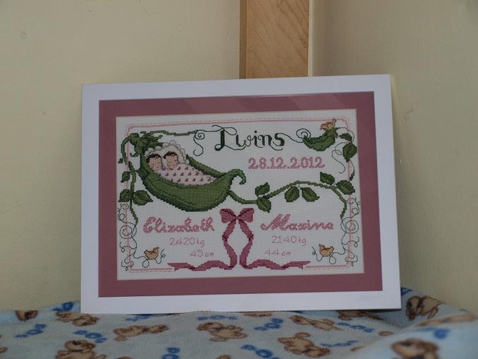 Вышилась метрика для маленьких сестричек, которых очень долго ждали их родители: