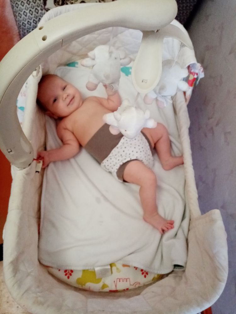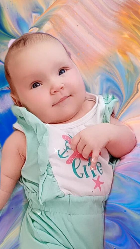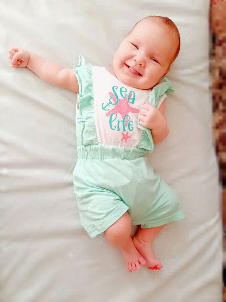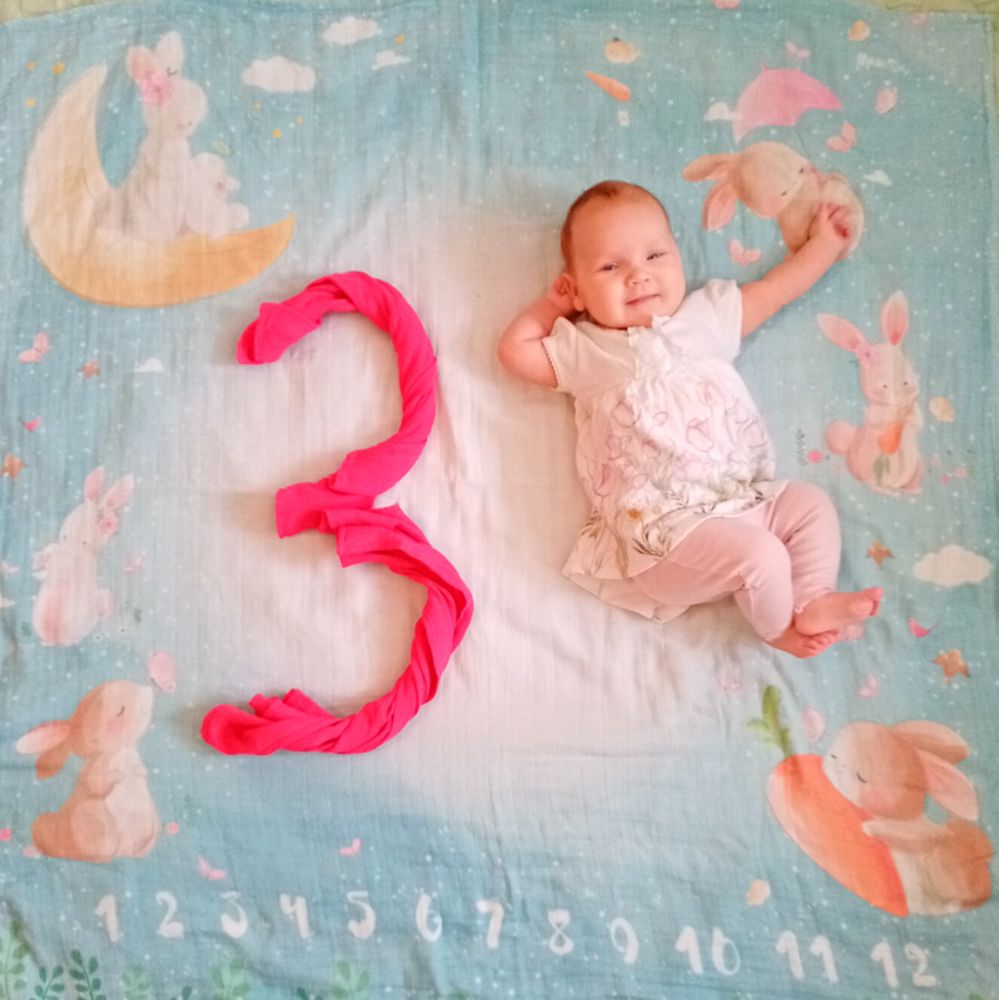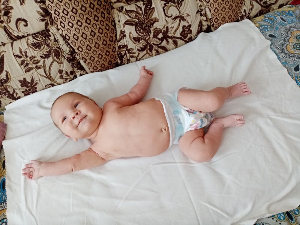 Малышка самая улыбчивая из всех троих. Такая забавная. Поворачивается на живот, уже непло держит голову и плечи, начала координировать движения, уже ловит висящую рядом игрушку или стучит по ней руками-ногами и смеётся😊 Из всех троих первая взяла соску сразу и неплохо с ней засыпает, когда ничего не беспокоит и сытая. И вообще может подолгу сама лежать на коврике развивающем или в люльке. В общем золотой ребёнок😅