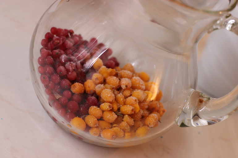 быстрый полезный компот- любое сочетание- шиповник, сушеные яблоки, облепиха, вишня, зеленый чай можно даже насыпать, чабрец- в графин и залить кипятком