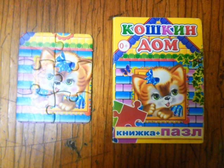 Следующая книга тоже пользуется большой любовью у сына по одной простой причине - также сильно, как машины, мы любим котиков! Это картонная книжка-малышка "Кошкин дом" с мозайкой. Мы и музыкальный мультфильм смотрим часто, и книгу читаем, и пазл уже за несколько секунд собираем!:)