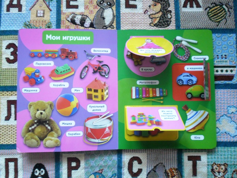 8. На восьмом месте у нас книжка с окошками "Книжка про меня". Интерес к ней у сына как-то быстро прошёл и сейчас иногда достаёт, но редко.