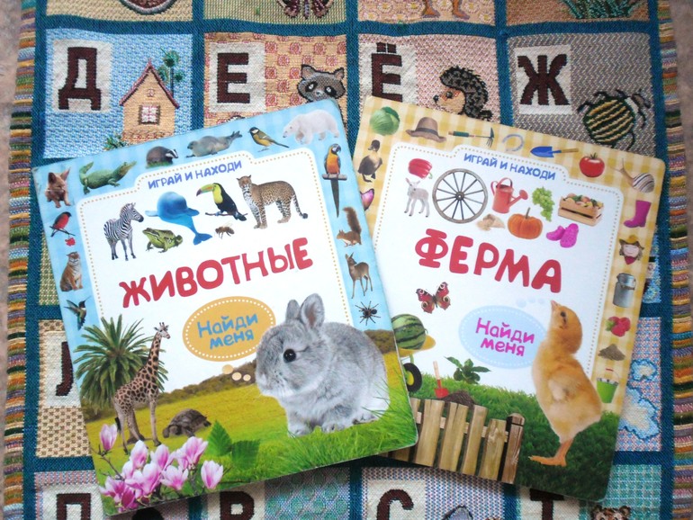 2. Следующая "любимица" - целая серия, из которой у нас пока всего две книги, но планирую в скором времени докупить ещё минимум парочку. Это серия от Росмэн "Играй и находи". Особенно сыну полюбилась книга про животных. Он находит и животных по заданиям, и тех животных, которые есть у него в игрушках. Когда приносит обе книги, мне или мужу даёт про ферму, а про животных всегда забирает себе:)