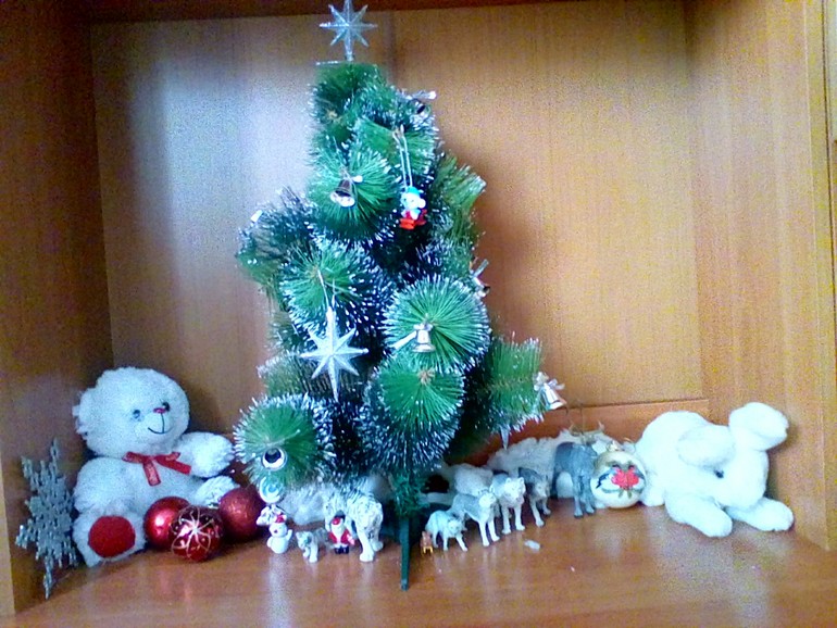А пока покажу ёлочки из двух последних книг и нашу мини-ёлочку (правда, сейчас на ней уже не одна игрушка с новогоднего киндера, а целых три) :)