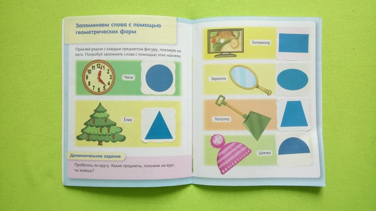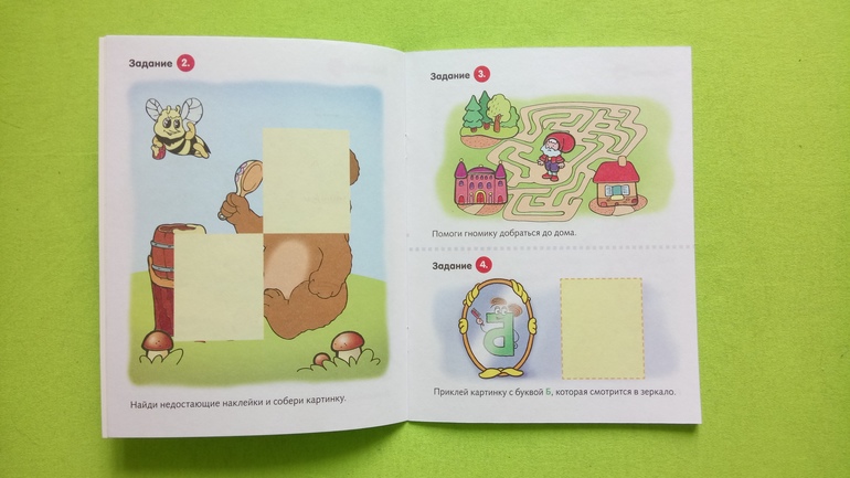 Покажу немного разворотов. Правда, пока я собиралась сфотографировать, сын уже успел выпросить позаниматься:) из минусов - наклейки не многоразовые, а сын иногда не с первого раза клеить ровно и старается переклеить. Если сразц успеть снять, то получится, а так порвётся наклейка.
