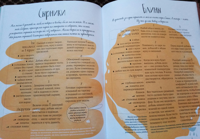 Конечно, все эти рецепты можно найти в интернете, и некоторые и на упаковке продуктов, а какао и вообще растворимое купить, но вот когда книга перед глазами, как то чаще тянет что нибудь сотворить на кухне) да и с ребенком удобнее и интереснее листать бумажную книгу и вместе выбирать, чем же мы сегодня накормим папу)