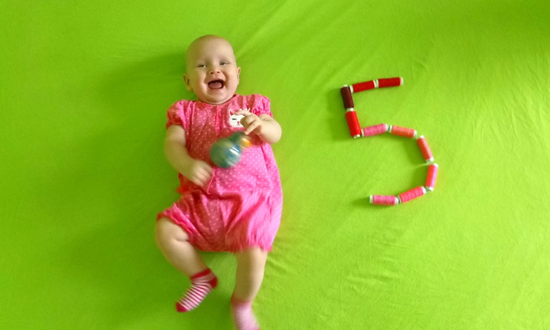 Что-то я припозднилась в связи с отъездом мужа, но исправляюсь:) Итак, Викуле 5 месяцев.