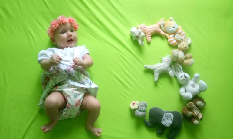 Про рост/вес даже писать не буду, мы его по-прежнему не знаем:) Зато знаем, как улыбаться родным, дрыгать ногами, крутиться на попе по дивану, пытаемся подняться, когда нам не хотим лежать, аж до психов, умеем хватать игрушки и всё, что попадётся под руку, и тянуть их в рот, хорошо держим голову и спинку, а сегодня по случаю мини-датой начали переворачиваться!:)