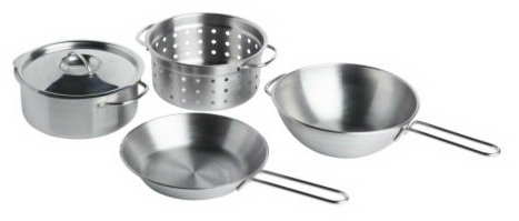 А ещё не могу не прихвастнуть =) Вчера из Икеи привезли детский набор посудки :) Даже наш папа не устоял перед маленькими кастрюльками. Не устоял он, кстати, дважды: сначала в магазине при покупке, а потом и дома, когда, увидев ребенка, резко передумал отложить сюрприз до Нового года и стал подзуживать: "Давай подарим сейчас, давай сейчас"