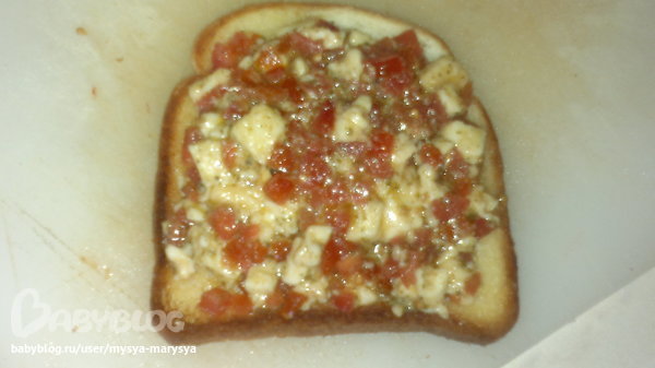 Поджарила я несколько тостов и выложила получившуюся смесь на хлебушек.