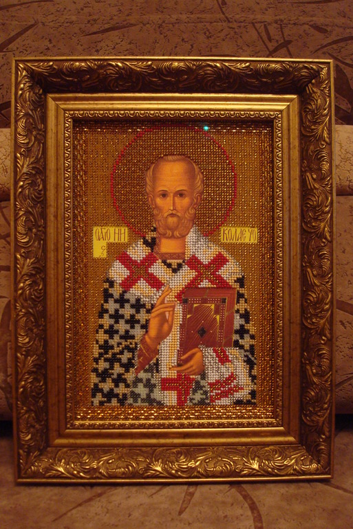 Вот и закончила я вышивку, забрала из багетной мастерской икона вышита бисером, в подарок моей бабушке)))
