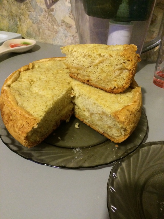 Мама принесла домашних яблок. Один сорт очень кислый. Решила испечь пирог. Правда духовка у меня не работает))) делала в мультиварке. Делала в первый раз. Думаю, получилось не плохо. Дочь активно помогала, теперь сидит уплетает.