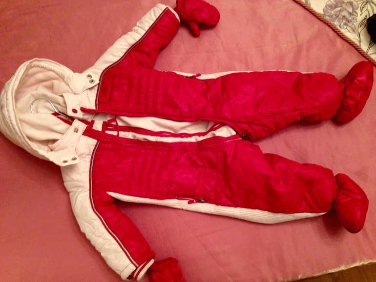 Цена 2500 руб.+ доставка (я регион) В хорошем состоянии, но есть небольшие потертости на светоотражающих полосках и маленькая дырочка на рукаве. Можно заклеить, она особо не видна, обнаружила только сейчас, когда фотографировала. В комплекте идут пинетки, которые пристегиваются, варежки и флисовая поддева. Мы носили осенью без поддевы и зимой в коляске с меховым конвертом до -10.
