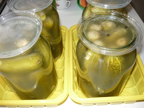 Рецепт: покупаем огурчики маленьки и средние, пупырчатые (я не огородница, потому в сортах полный профан и определяю на вид) . В стеклянные банки на дно раскладываю соцветие укропа, порезанный лист хрена, порезанный на половинки 2-3 зубчика чеснока, черный перец-горошек, листик смородины, красный стручковый перчик (на любителя остренького) . Хорошо помытые огурцы (кончики не обрезать!!) , укладываю плотно-плотно до верха. ВНИМАНИЕ! В чуть-чуть теплой воде разводим соль 100 грамм на 1 литр воды и этим раствором заливаем огурцы до верха банки, затем сверху посыпаем половинкой чайной ложки сухой горчицей. Банки накрываем неплотно легкими крышками (я использую с баночек покупной сметаны) . Ставим банки в емкости, чтобы рассол во время брожения не разливался по поверхности стола, полки или подоконника. Огурчики солятся 4-5 дней ( в холодное место не нужно ставить) . Мы следим за тем, когда "процесс брожения-соления" подошел к концу - сначала брожения мутный рассол становится более прозрачным и на огурчиках образовался некий осадок - пора готовить огурчики к закатке. Берем нужное количество крышек, моем под холодной водой. Берем банку с оугрцами, накрываем ладошкой или крышкой с дырочками и переворачиваем вверх дном. Видим осевшую муть, наша задача ее вымыть до чиста - встряхиваем хорошо банку и через пальцы или крышку с дырочками выливаем напрочь! Наливаем из-под крана холодной воды и повторяем процедуру до полной чистоты содержимого в банке. Затем ставим банку под кран с холодной водой и наполняем ее до "мениска", т. е. максимально. Проверяем, чтобы между огурчиками не было никаких пузырьков, постучим по баночке, чтобы все пузырьки поднялись вверх. , когда кладем сверху консервную крышку - вода из-под нее "цвиркает", это означает, что лишняя воду вылилась и воздуха там нет!! ! Закатываем крышку. И ВСЁ. Переворачивать банки не нужно. На несколько дней оставьте под контролем баночки - если вдруг там остался воздух по нашей оплошности, то процесс брожения крышку вздует. Я в таком случае убираю крышку, "исправляю ошибку" долив воды по максимуму и закатываю новой крышкой. Но мой 20-летний опыт уже избавил меня от этого. Так что будьте внимательны! Огурцы стоят в шкафу в квартире год, два, три. Вся хитрость соления - огурцы хрустящие, как из бочки, лишняя соль ушла в чистую воду, рассол становится настолько вкусным, что после новогодней ночи и не только кому-то он поправит голову. Ну а рассольник получается классическим